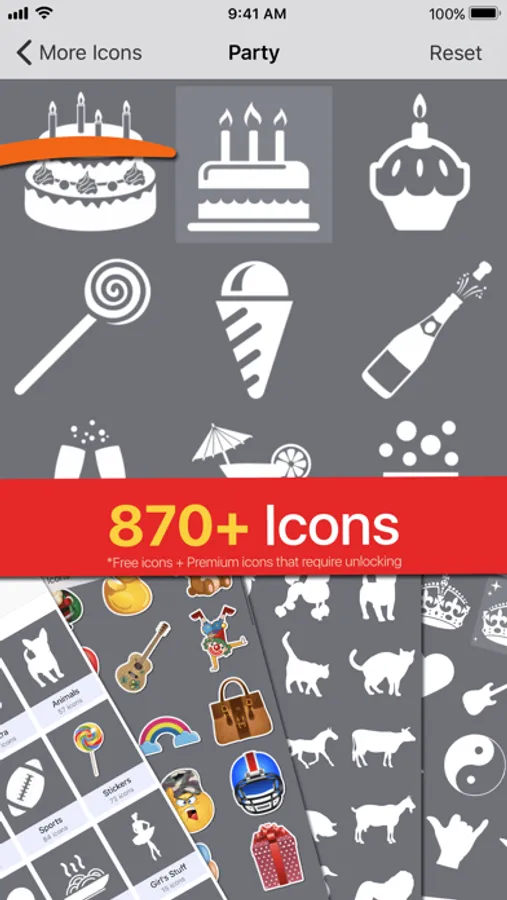 - Tap the icon to change it (870+ Icons in 22 categories are bundled)