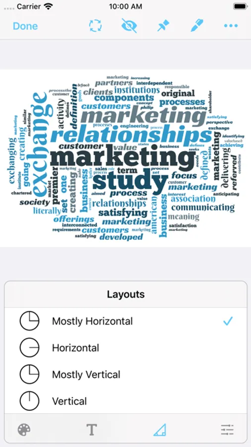 Make great word clouds out of documents or sentences that matter to you! With Wordsalad, you can make beautiful word clouds, super customized with different fonts, colors and words layouts.