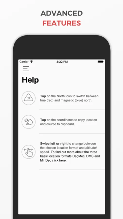 Besides pointing to the true or magnetic north, Simply North also displays your current location, altitude and speed. This makes it the perfect companion for passionate hikers!