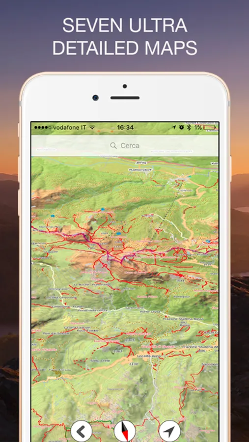 Outdoor barometric altimeter with seven open source maps specially designed for walkers, compass with places search, weather and step counter.