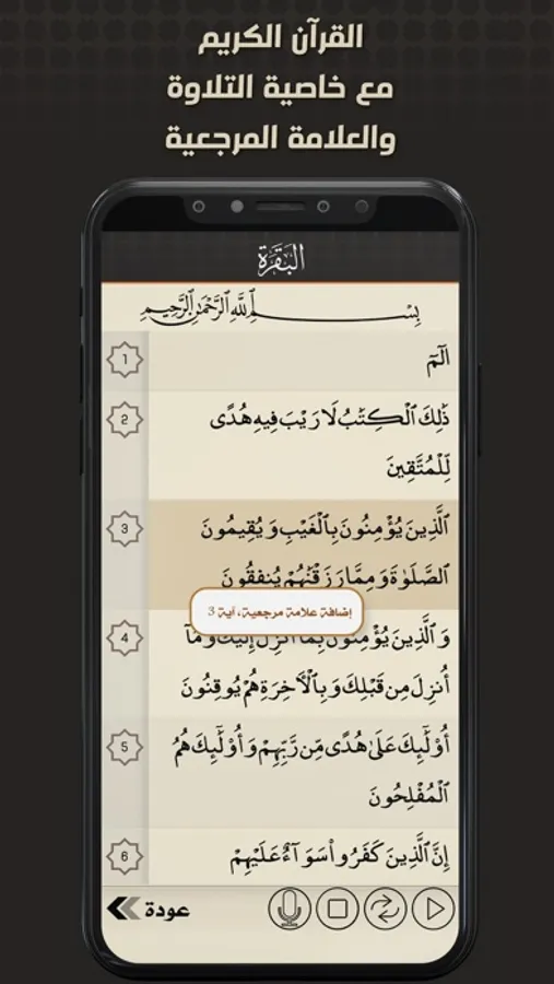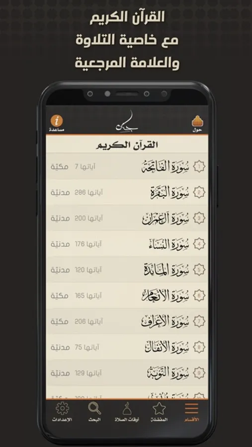 - قسم خاص للقرآن الكريم مع التلاوة وحفظ العلامات المرجعية واختيار القارئ