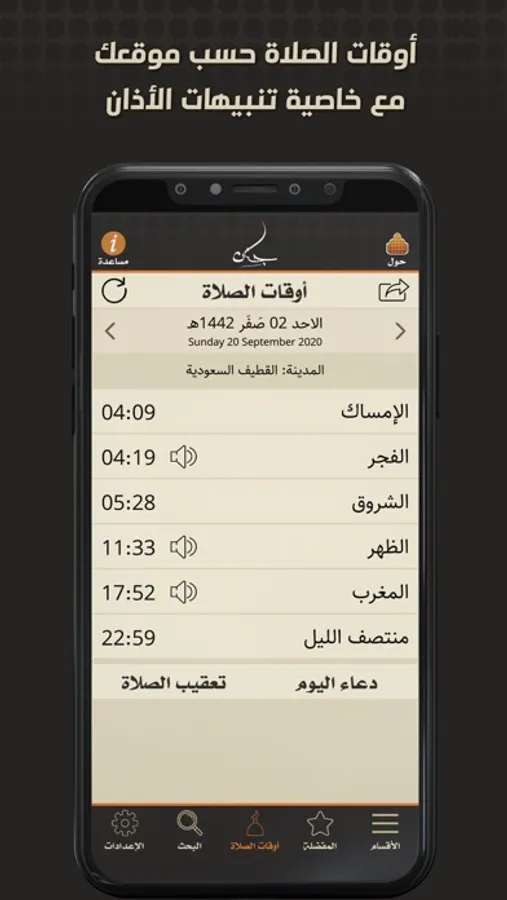 وأوقات الصلاة مع التبيهات للأذان حسب موقعك الجغرافي