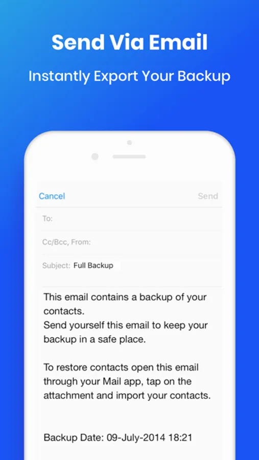 ○ Backup Contacts as VCF (VCard). Quickly export your backups to any service you want.