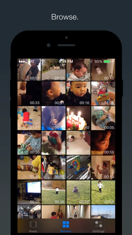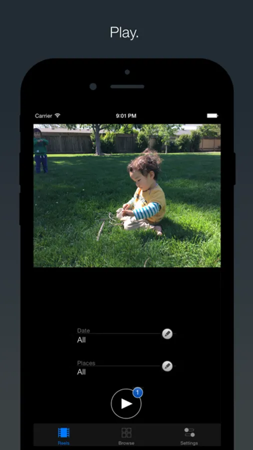 iReels lets you play your camera roll videos in sequence or random order, filtered by dates and location. Perfect for watching the videos that you took to sit back and enjoy on your iPhone or over AirPlay with AppleTV.