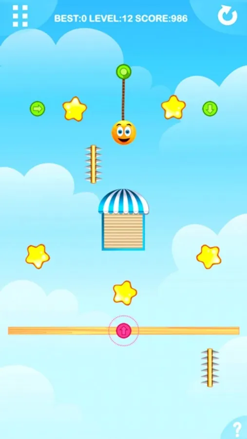 - Collide with the buttons which containing arrows to change gravity direction.