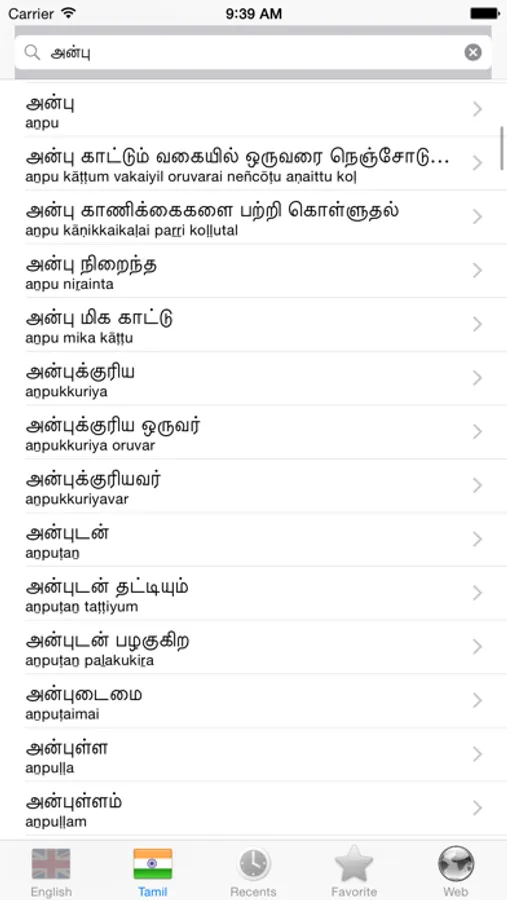 * Full support pronunciation for both English and Tamil will help you so much in study these languages.