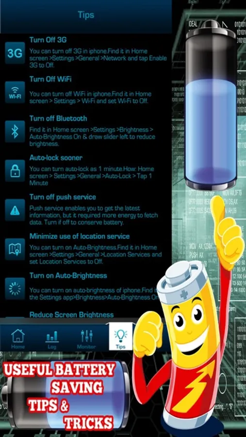 Tips - Many useful tips and informations on the correct use of your battery - follow these tips and use the Battery Power app will help you keep a healthy battery life for your device.