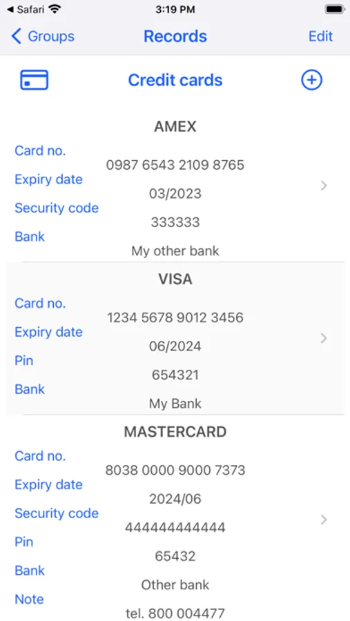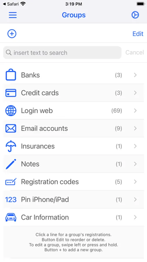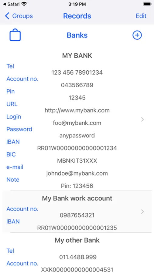 Safe, fast and easy to handle, iDataSafe is your wallet to store passwords, codes, bank accounts, credit card access data, the countless authentications of the various web accounts with logins and passwords and all other confidential information for daily use.