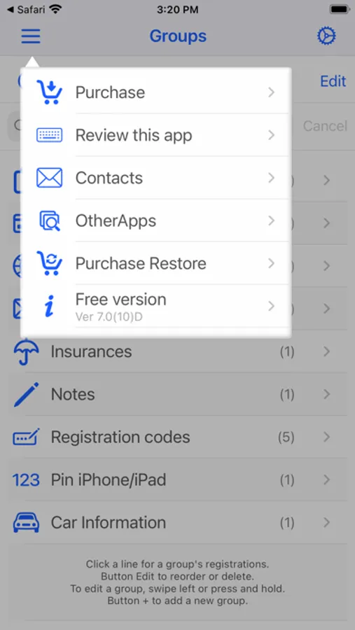 To unlock the app for an unlimited number of registrations you can upgrade to the Premium version with the purchase function available within the app itself.