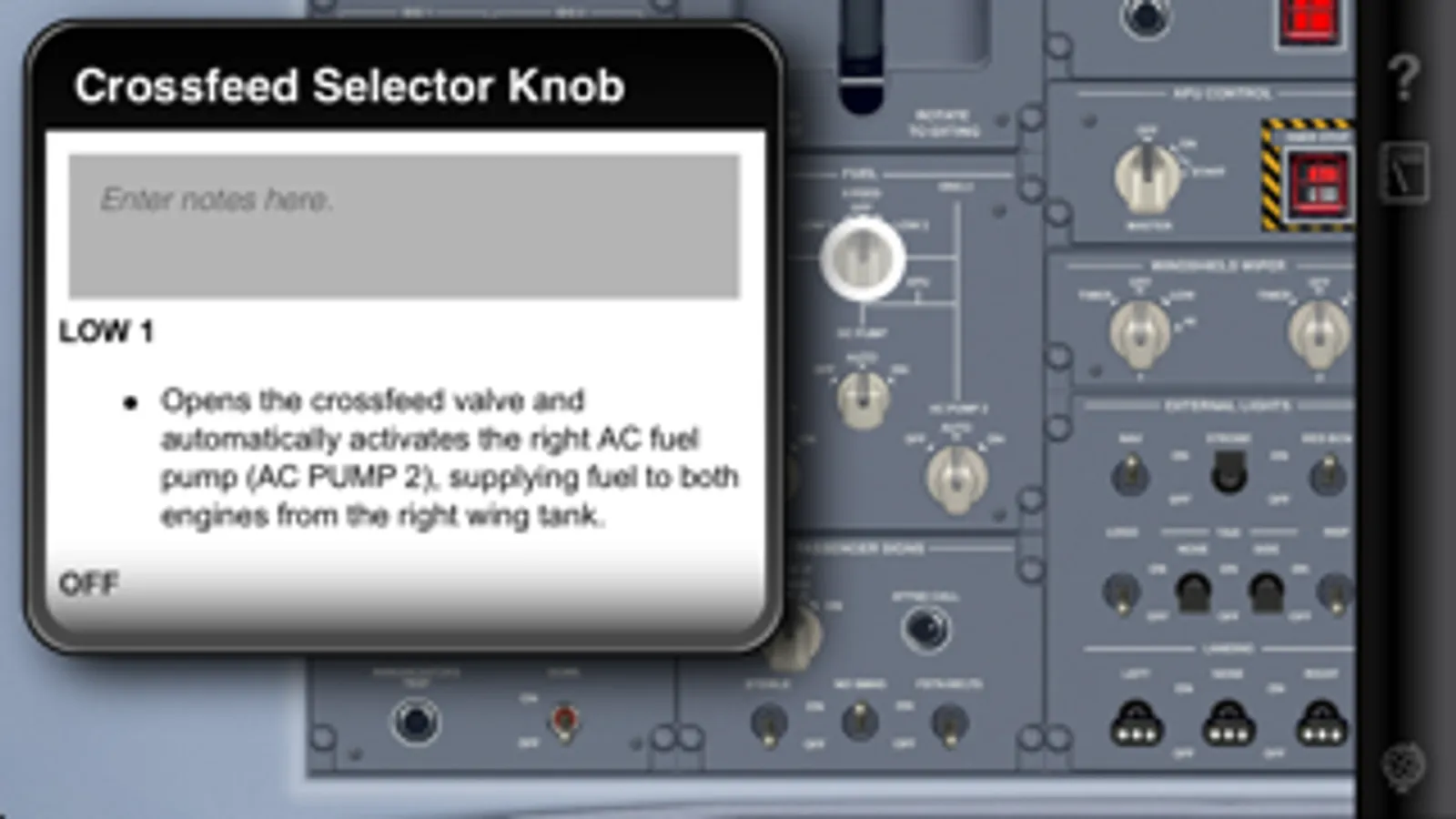• Quick study tool for oral exam and checkride preparation – quiz yourself on cockpit switches, lights, and other indications