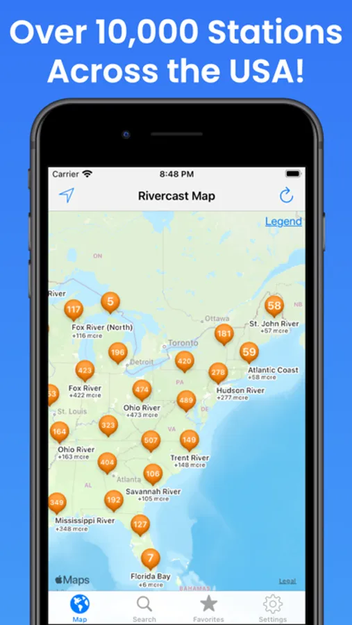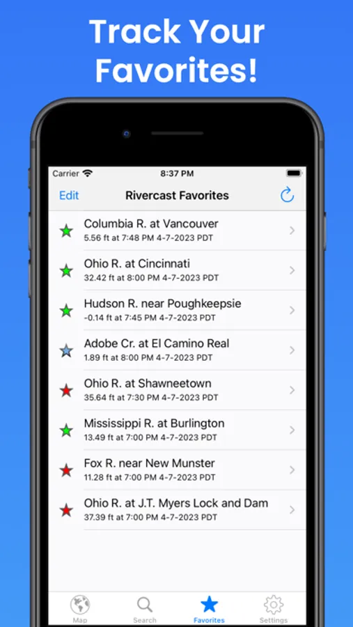 • This app uses NOAA and AHPS (Advanced Hydrologic Prediction Service) for its raw data for our custom graphing and mapping solutions. There are some locations that are available via other government agencies (including USGS) that are not available via this app.