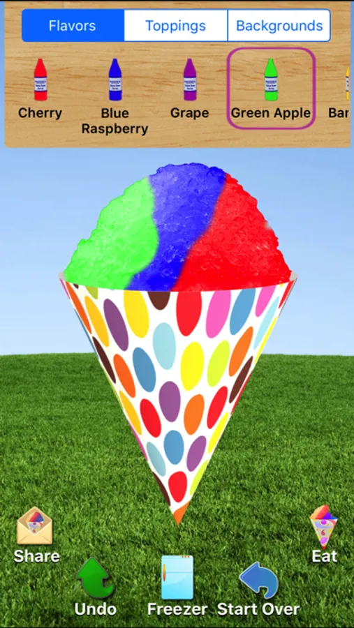 Before you eat your snow cone, you need to pick the right spot- choose backgrounds like the beach, a picnic, carnival, fireworks show and more.