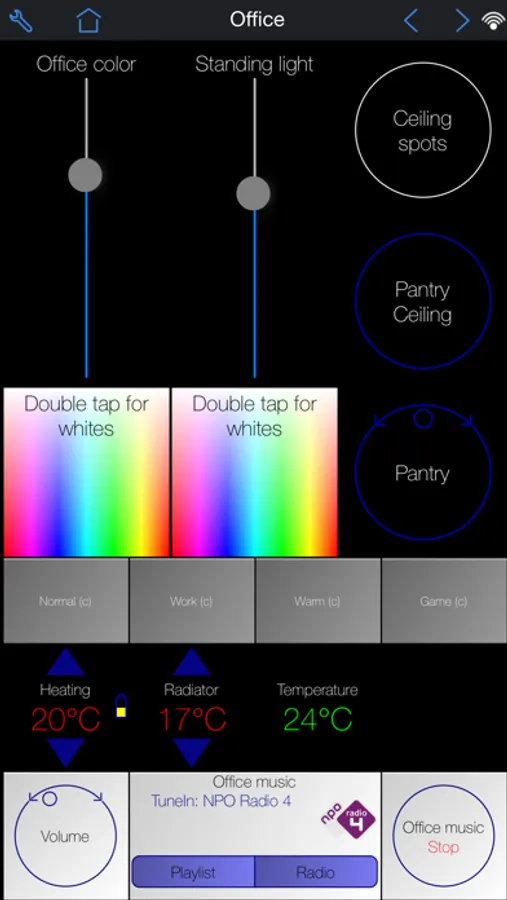 HomeWave is a fully customizable remote control app for use with MiCasaVerde's Vera home control system (Z-Wave), and also compatible with OpenLuup. The control panel presents a clean, simple interface aimed at end users who are not familiar with Z-Wave or Vera, but who simply want to turn on the lights or adjust the heating.