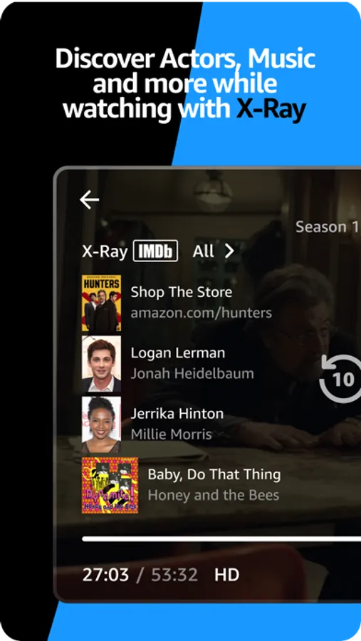 • Go behind the scenes of movies and TV shows with exclusive X-Ray access, powered by IMDb.