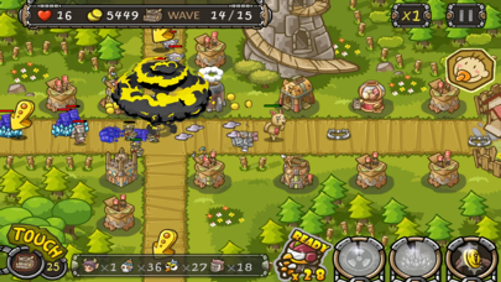 Build the most useful path to the stage by gaining block points,you can upgrade your tower and skills.