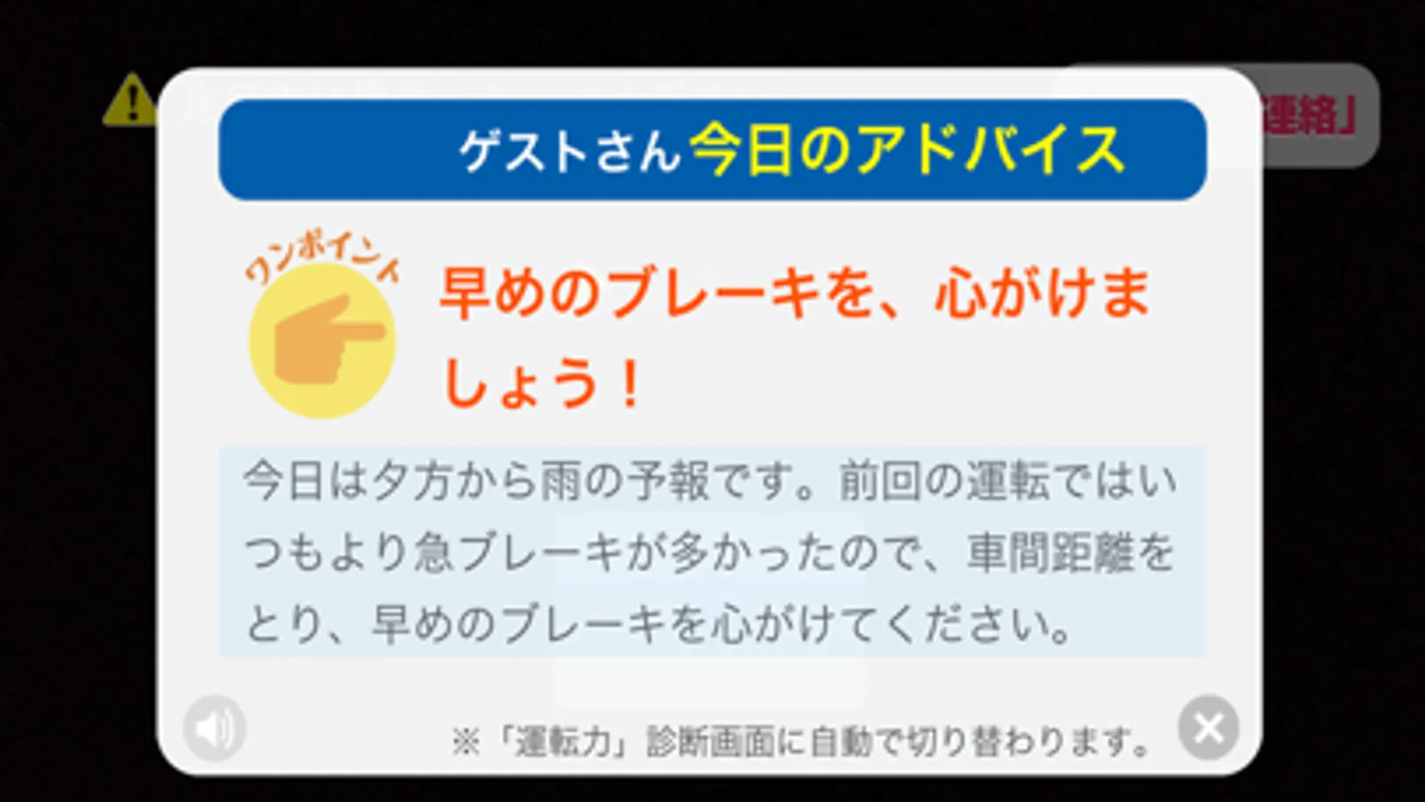 アドバイスは過去の「『運転力』診断」の結果や傾向、運行時間等様々な情報を反映した内容です。