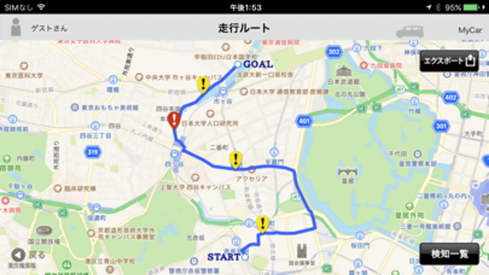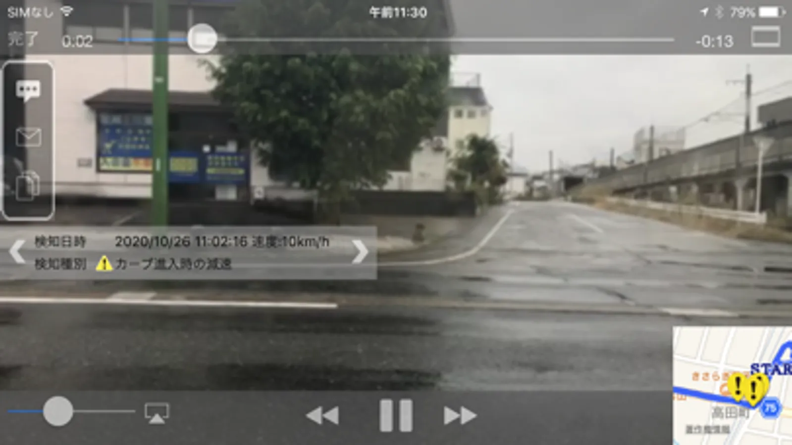 地図上の危険ポイントをタッチすると、危険箇所前後の映像がチェックできます。