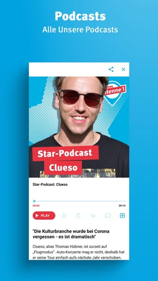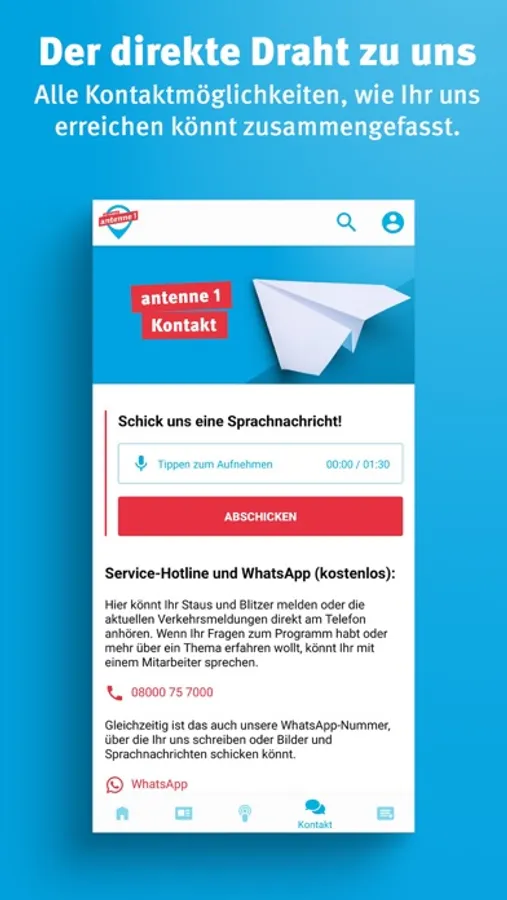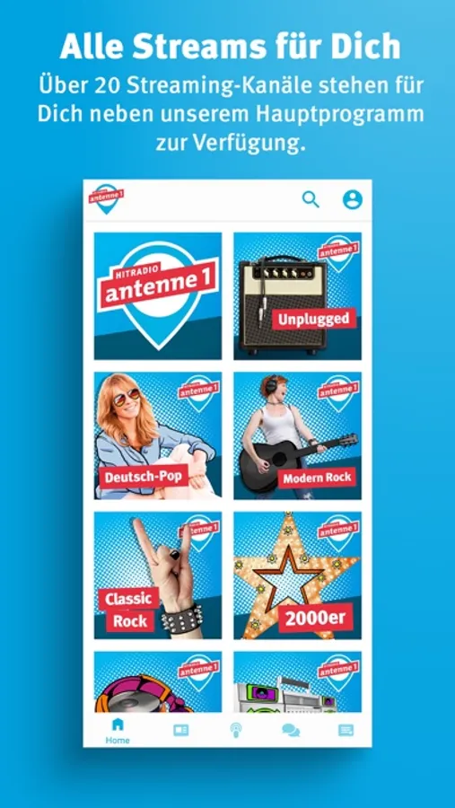 Zurück in die 80er oder 90er? Rockig am Morgen oder doch lieber ganz entspannt am Abend? Die aktuelle Top 40 oder die besten Filmhits aller Zeiten? In der App haben wir das alles: Von Top 40, 80er, 90er, Rock über Soft & Lazy, bis hin zu unserem Plus Kanal und antenne 1 Neckarburg Rock & Pop und viele mehr. Selbstverständlich bietet unsere App auch alle regionalen Ausspielwege von Hitradio antenne 1: Stuttgart, Göppingen, Reutlingen, Heilbronn und Pforzheim.