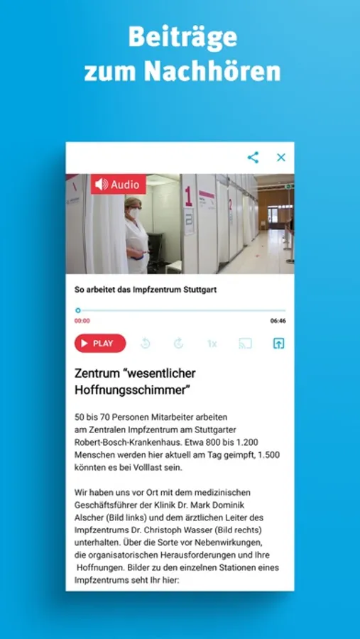 Musikstreams für jede Gelegenheit, Verkehrsinformationen und Nachrichten aus Baden-Württemberg direkt aufs Smartphone.