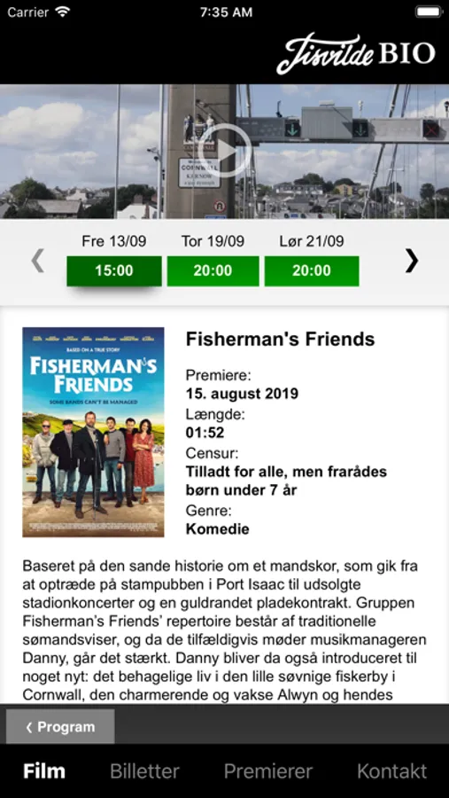 Med denne app har du mulighed for at gennemse programmet for Tisvilde Bio, samt se yderligere filminformationer som trailer, censur, medvirkende skuespillere, varighed m.m.