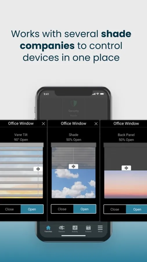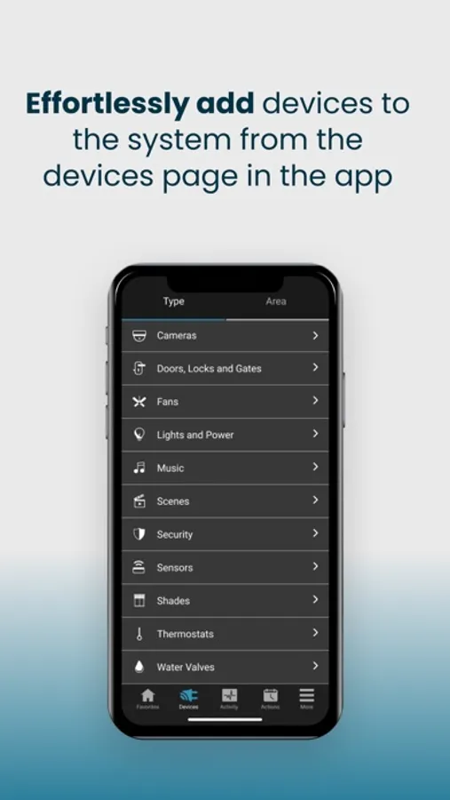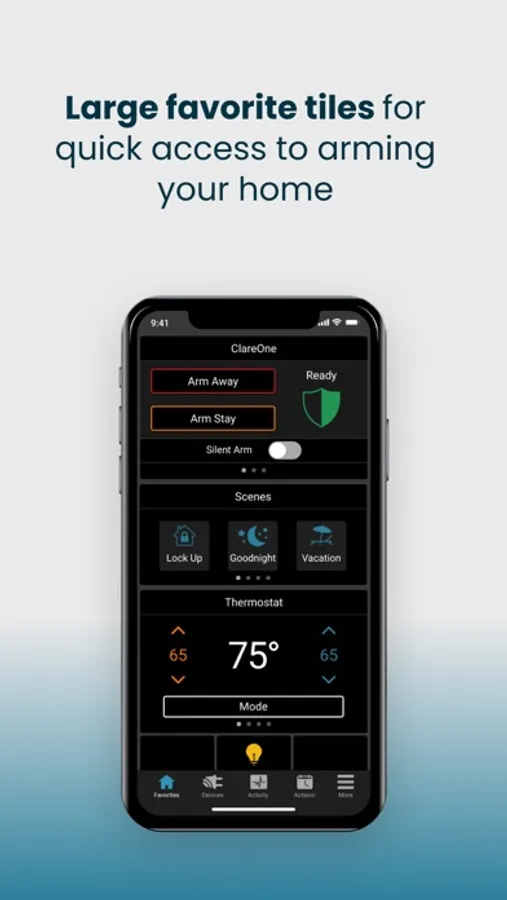* With the Favorites screen, each user can fully customize device control tiles and specialty widgets such as security, scenes, lights, and thermostats.