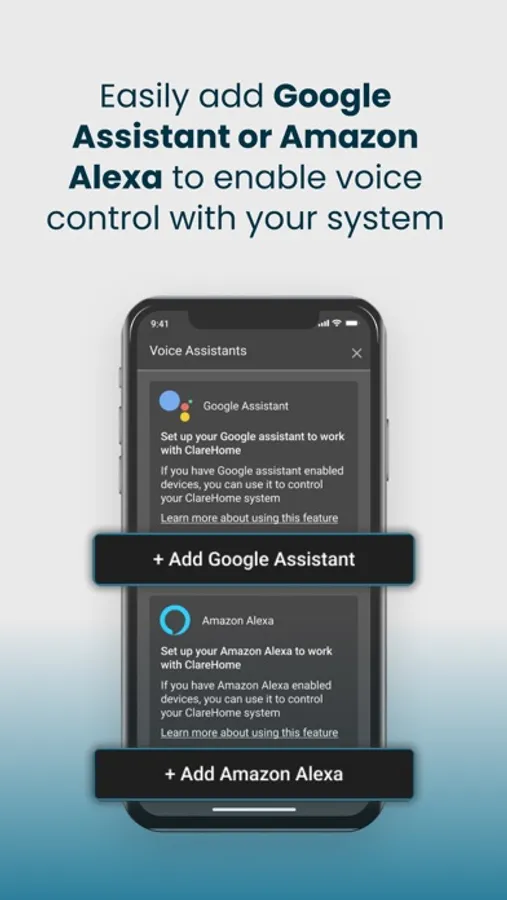 Welcome to your new smart and secure home! The ClareHome App gives your family remote access to your ClareOne system, allowing you to manage security, see the status of your connected smart devices, and control smart home features. The app can be fully personalized by each member of the family to fit their lifestyle and preferences. ClareOne supports hundreds of popular devices that can be controlled from your ClareHome App. From smart locks and garage door openers to thermostats, speakers, lighting, and many more. Your smart home is just a tap away.