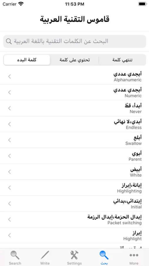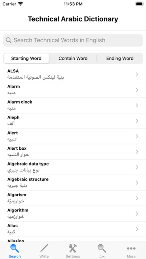 - Search the English word and it will display its Arabic translation.
