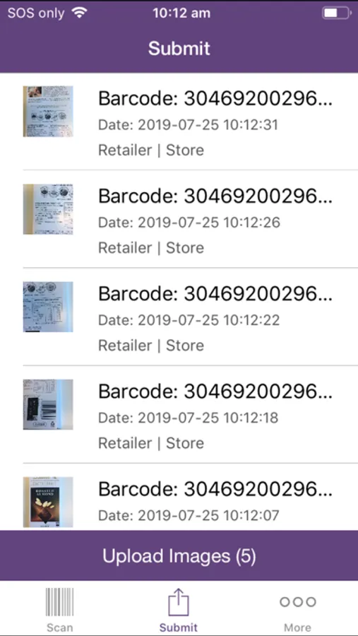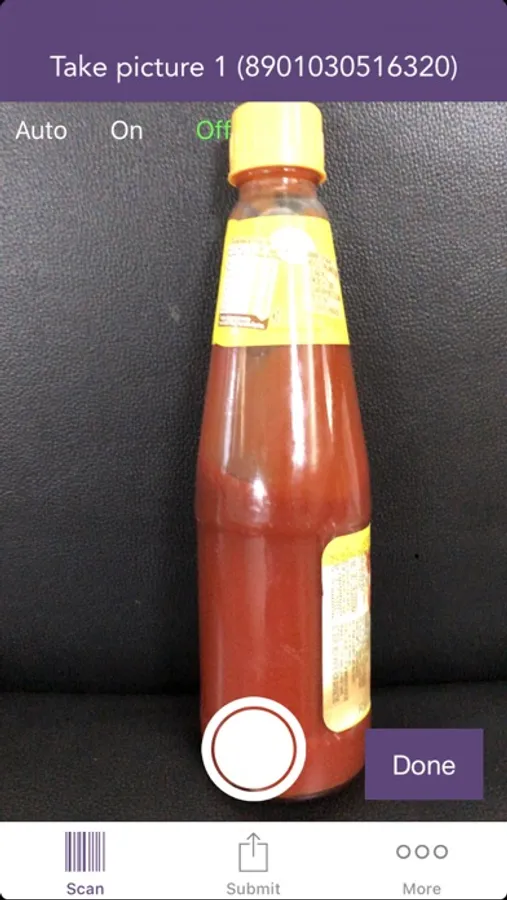 After scanning the barcode of a packaged food product, follow the app prompts to take photos of the product as required.