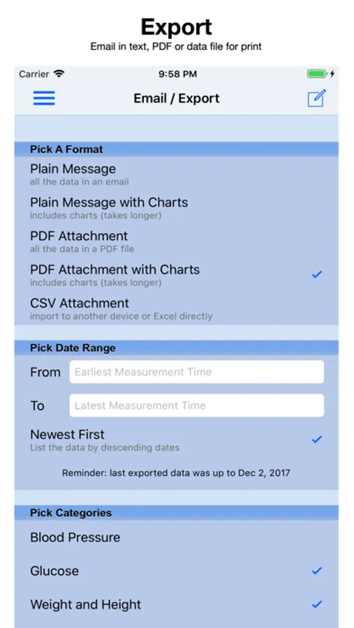 Email Import/Export – simple yet versatile email/export feature lets you communicate with your healthcare provider in a breeze.