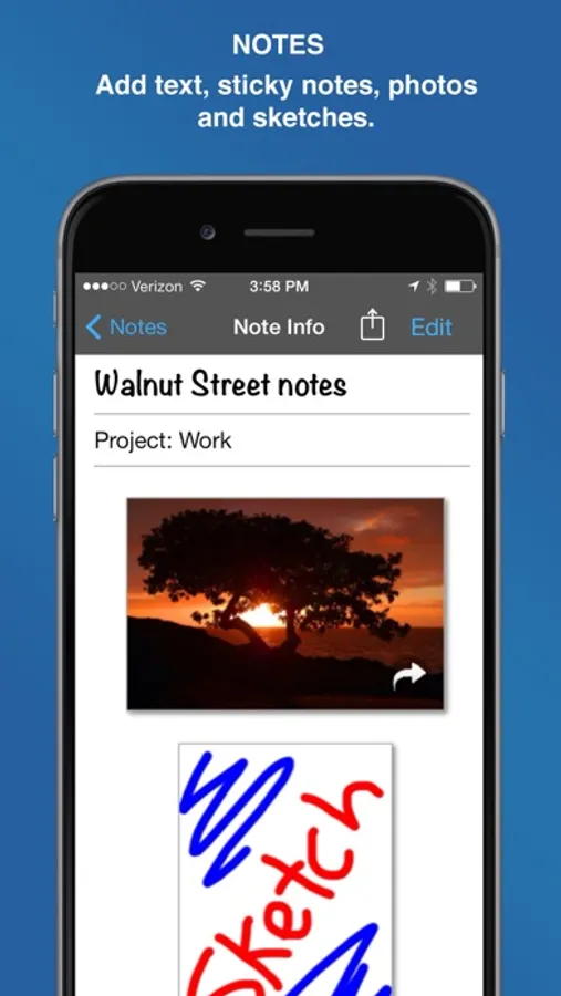 • Add to do’s and notes to your project which allows you to have more powerful and advanced project organization that can handle all your projects