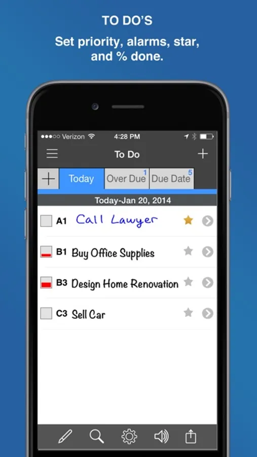 • View your to do’s with a variety of organizational tabs for more efficient viewing