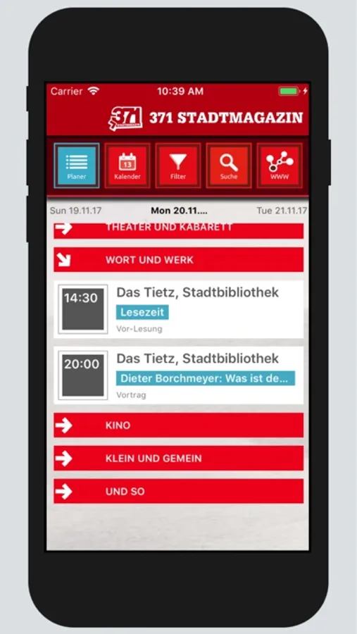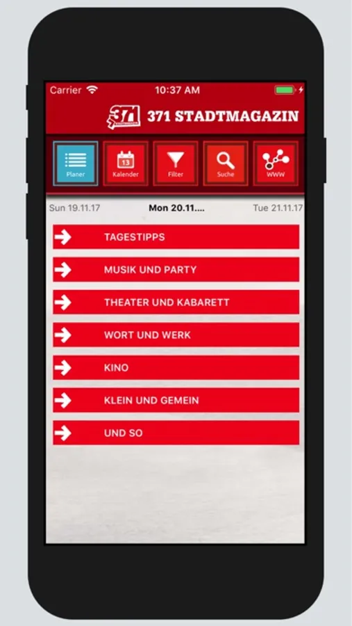 371 Stadtmagazin Planer App. Alle Veranstaltungen aus Chemnitz und Umgebung in einer App. Von Partys und Konzerten bis zu Kino und Theater.