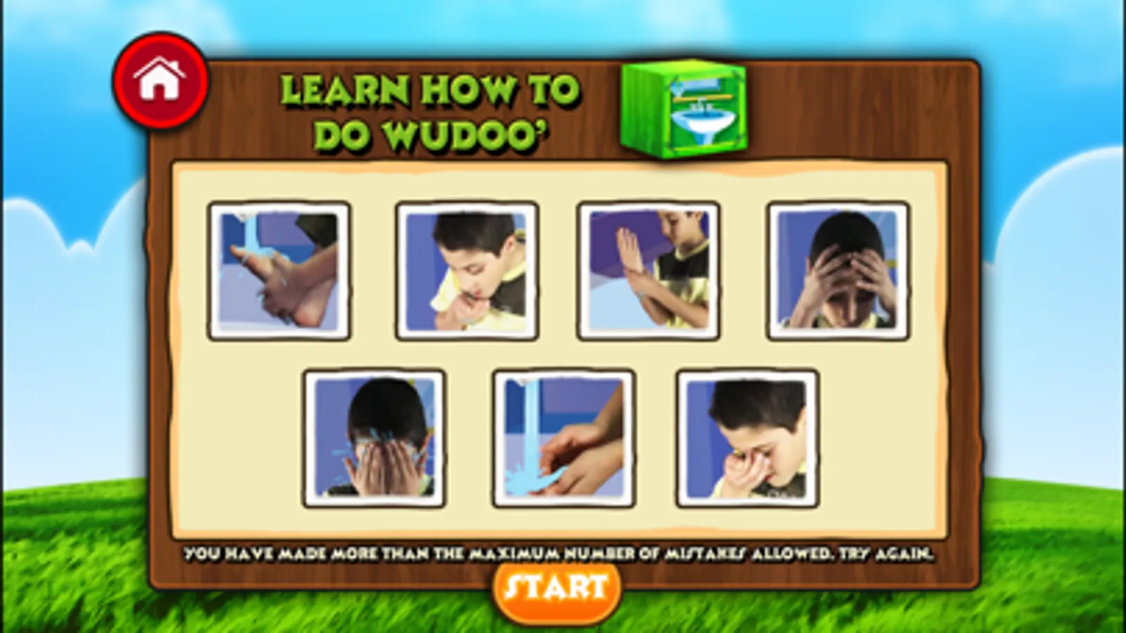 The application includes a teaching video for the wudhu as well as for the five daily prayers. It also contains an illustrated book which supports an attractive presentation helps make learning enjoyable according to the age of the children. In addition there are exercises in which the child places the acts of the wudhu and salah in the proper sequence, and this aids in testing how well the child has understood the taught material.