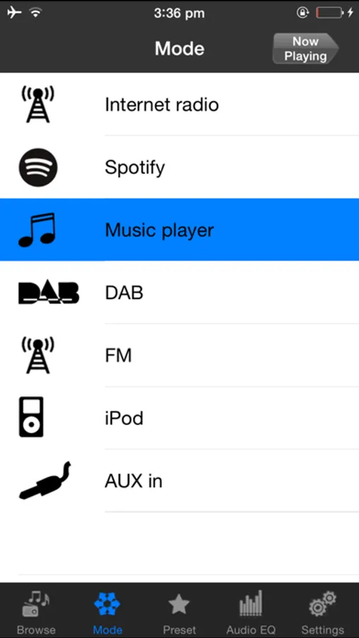 The Remote Control automatically detects the modes supported on the radio and configures the App screens so there are no unnecessary modes on the app.