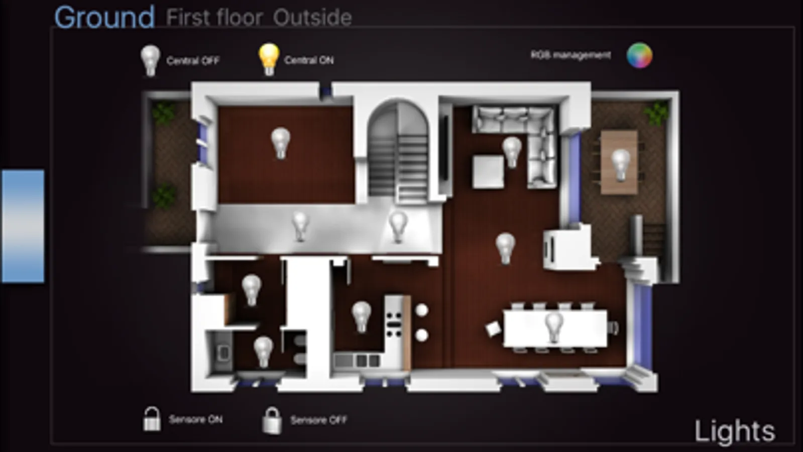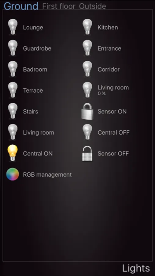 - Lights (on / off, dimmer, RGB)