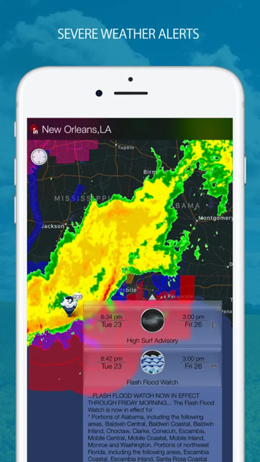 Radar Sky gives you up-to-date animated radar imagery from the National Weather Service, with coverage for all 50 US states (and Puerto Rico and Guam!).