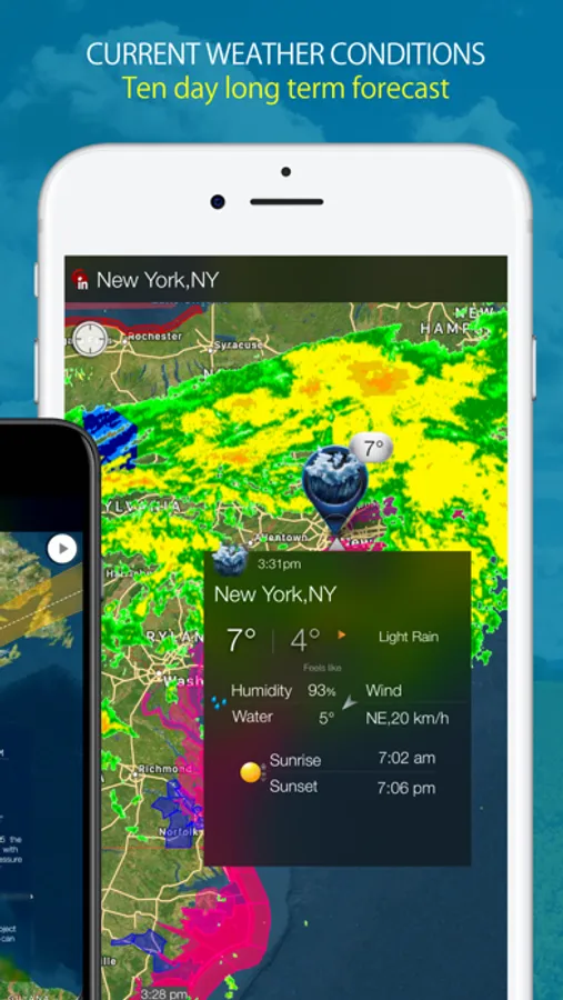 Radar Sky shows animated weather, so you can tell if rain is headed toward or away from you, and how fast.