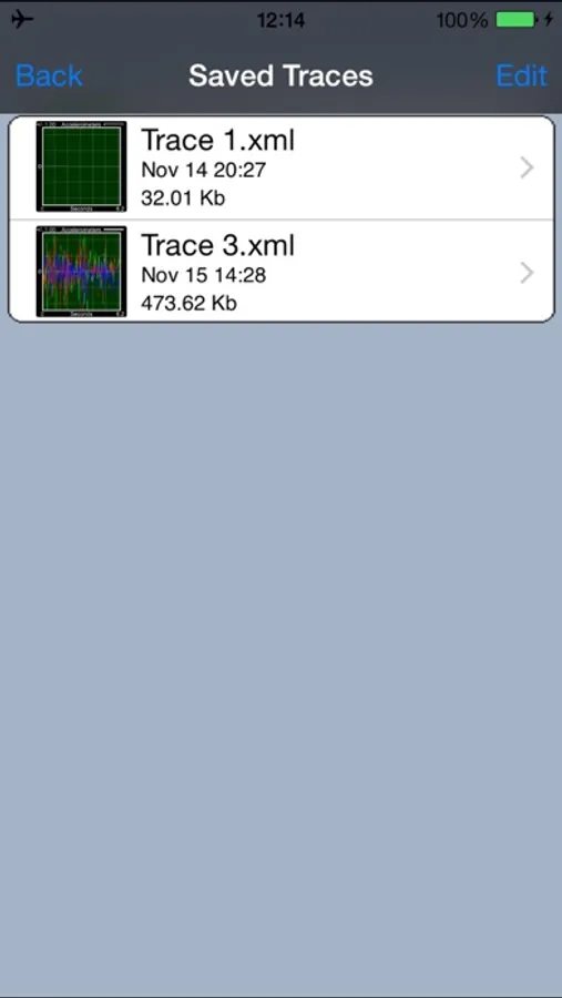 Traces can be saved from the main screen by accessing additional menu options using a swipe up gesture.