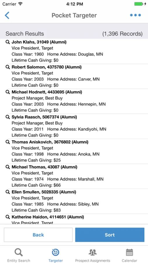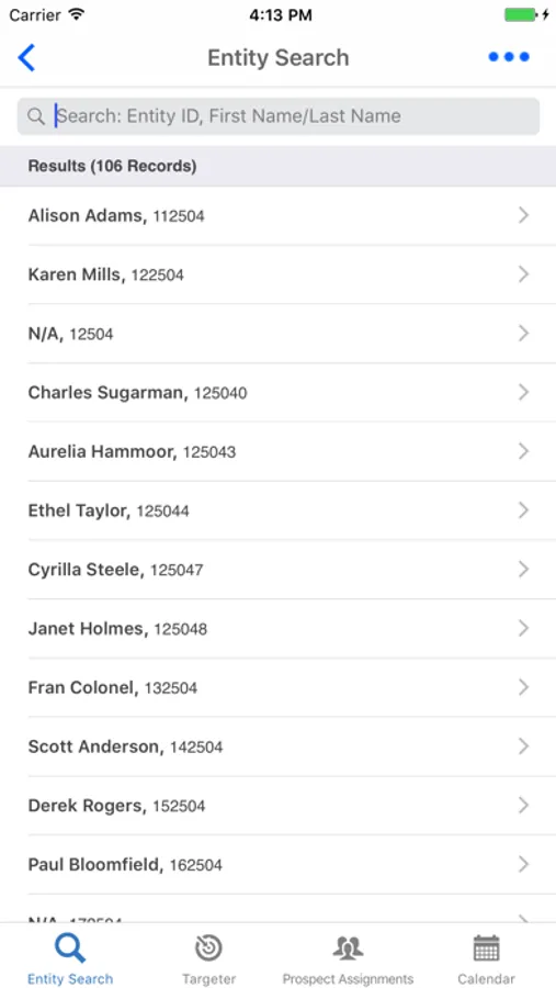 You may use the Entity Lookup feature to find who you are looking for. If you have prospects assigned to you, they will be there on your prospect assignment list. With our app, your prospects are in your pocket.