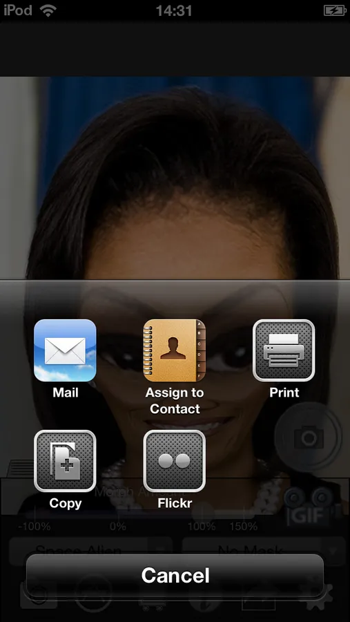 Face Dancer allows you to save still images or movies of your morph, and share them via Facebook, Twitter, email, YouTube etc. Optional morphs and artwork are available as in-app purchases.