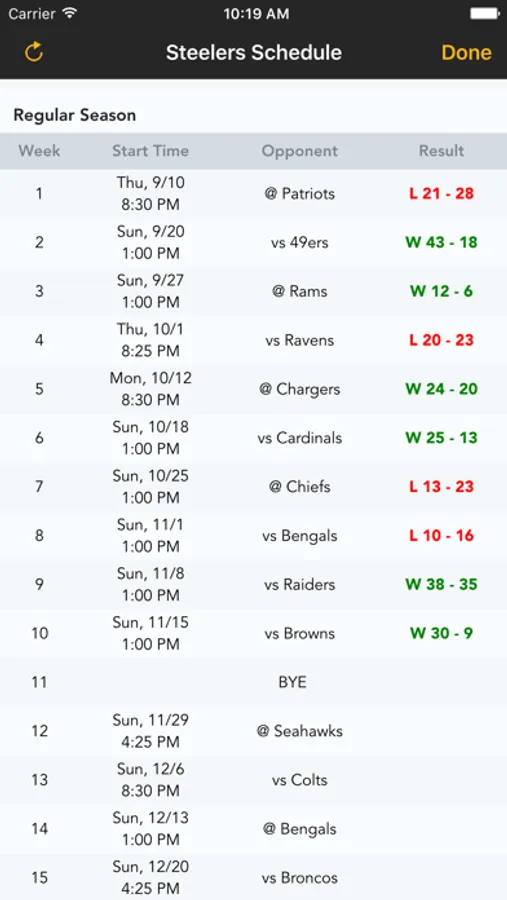 ◆ Steelers schedule