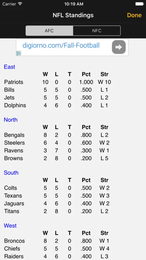 ◆ NFL standings