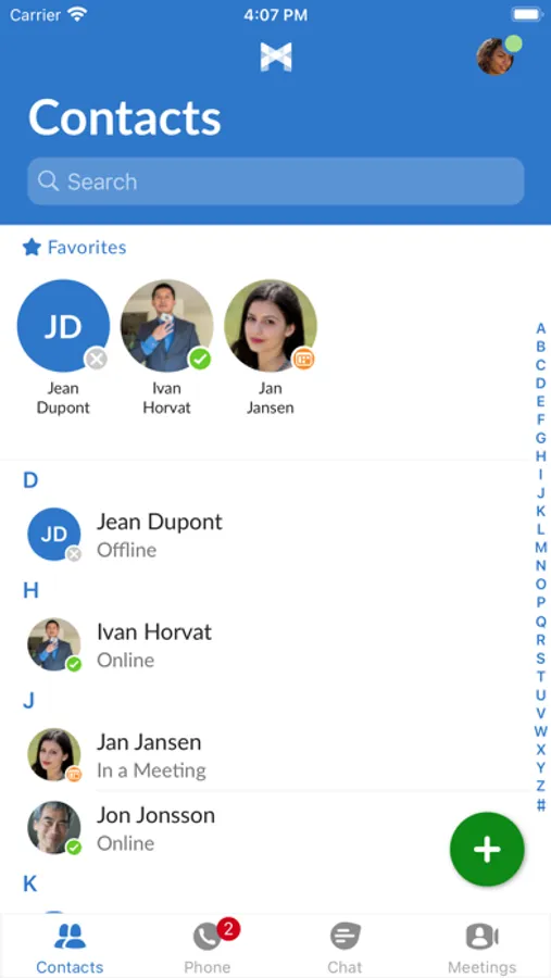 - Realtime presence from your business contacts to help you get in touch at the right time, and custom presence to help others reach you.