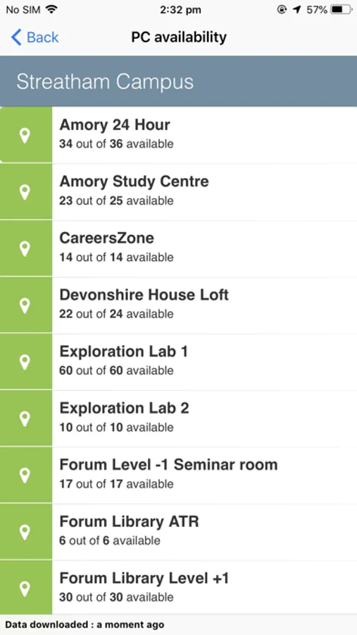 • Find out which rooms have free PC’s and study space