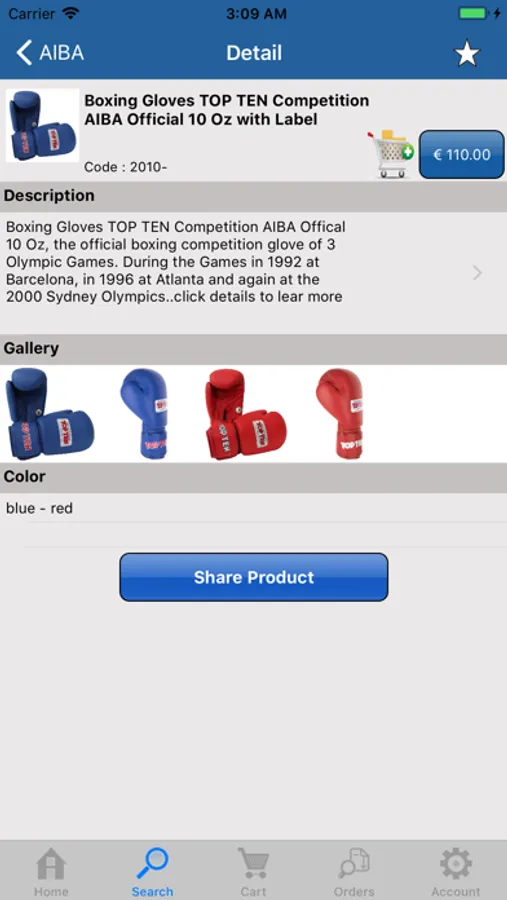 This App completes the range of the online purchasing tools for the combat sports and martial arts products branded TopTen and Hayashi.