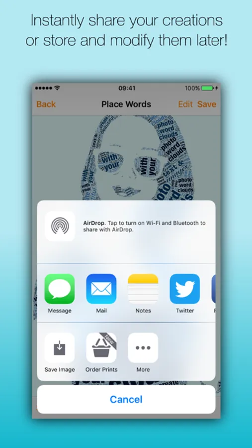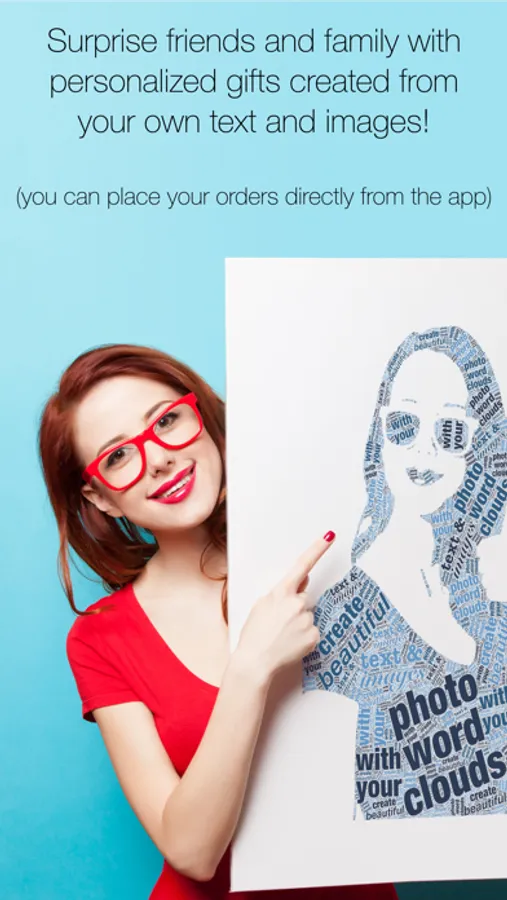 Create beautiful detailed photo word clouds with your images and text! Select your favourite photo, add and style your own text and turn them in a work of art to impress friends and family. The result can be shared as a PNG, JPEG image or even a PDF document to allow for printing at extremely high resolutions.