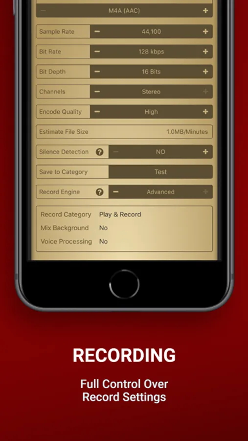 Voice Record Pro can record directly in MP4 (AAC), MP3 (MPEG) and WAV (PCM) formats plus convert function for all supported formats.