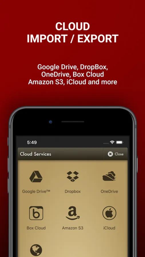- Export to and import from Google Drive™, DropBox, Microsoft® OneDrive (personal and business), Box Cloud, iCloud Drive, Amazon S3