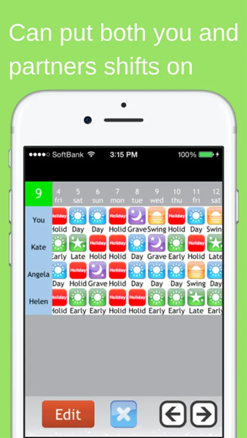 You can fill in shifts on the calendar with simple one touch controls using icons.