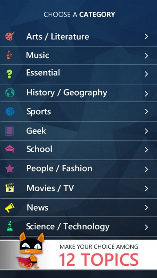 Discover this incredibly addictive game. Play with Askkat, the big cat wrestler is waiting in the ring for you to challenge your IQ. There are new questions and answers to challenge you every day which further enriches the game and enables you to stay connected to current events.
